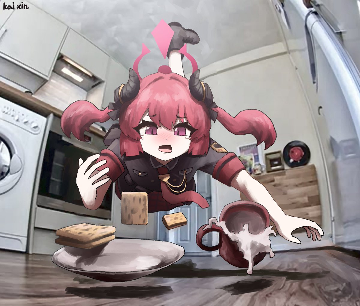 窪みに落ちてしまったミカ。溝のミカ