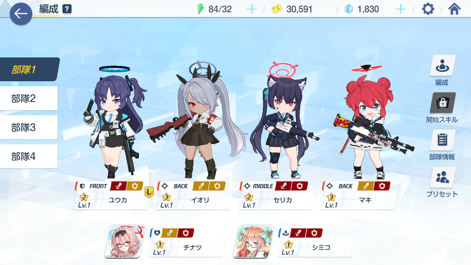 ・星1,2でもコタマ、セリナ、チセ、ツバキ、ムツキ、モモイ、モミジは優秀なので育てるべし
