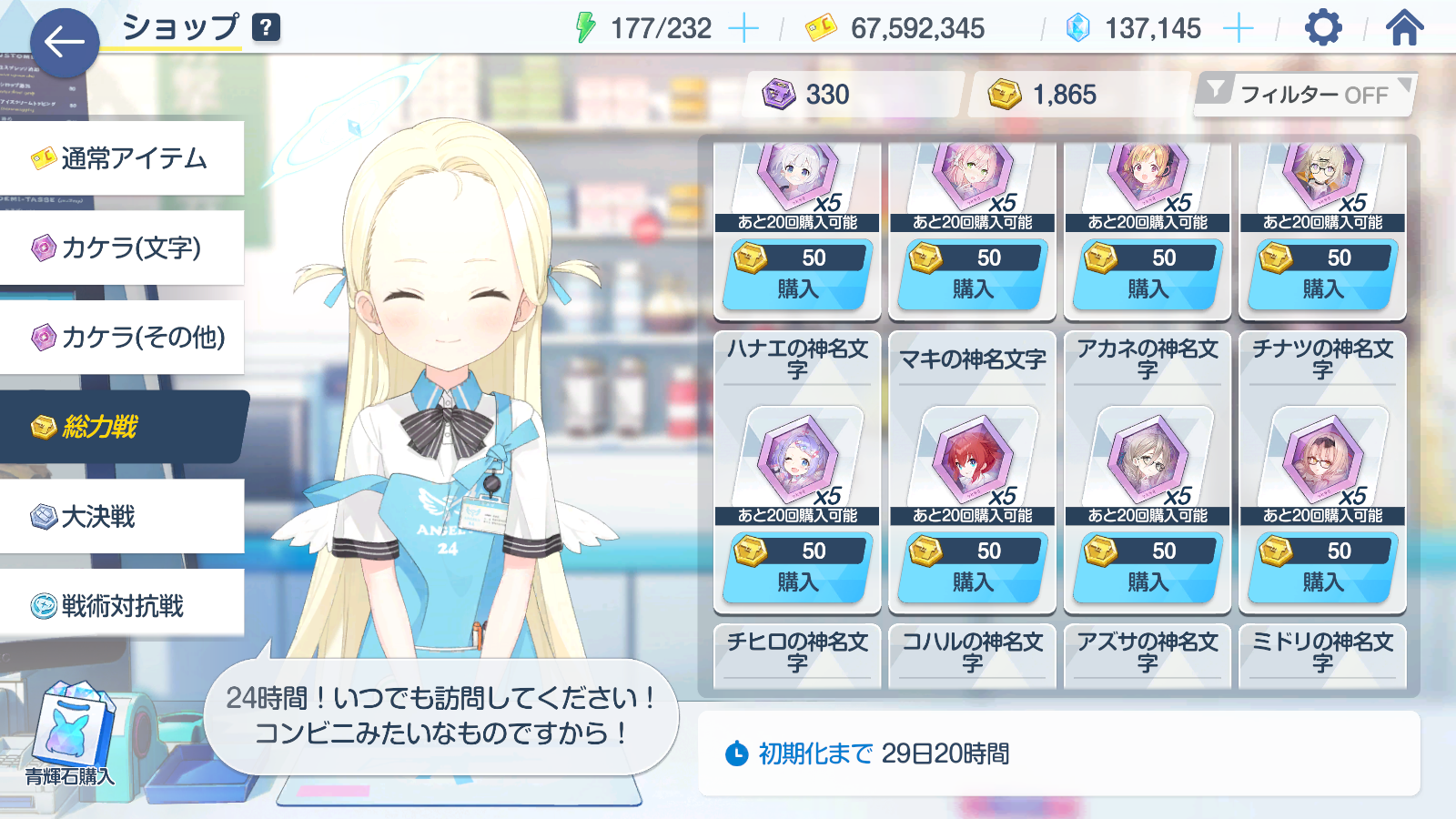・シロコ(水着)、ヒマリ、キサキのうち1人はなるべく確保したい(エンドコンテンツで有利になれる)