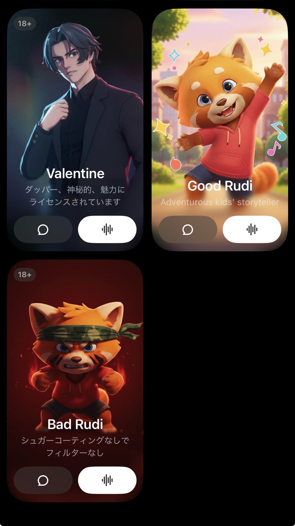 Grokのコンパニオンモードでこいつら使ってる人いんのかな🥺️