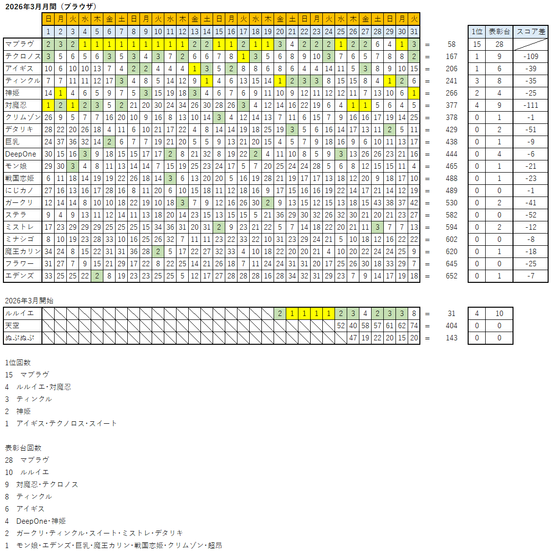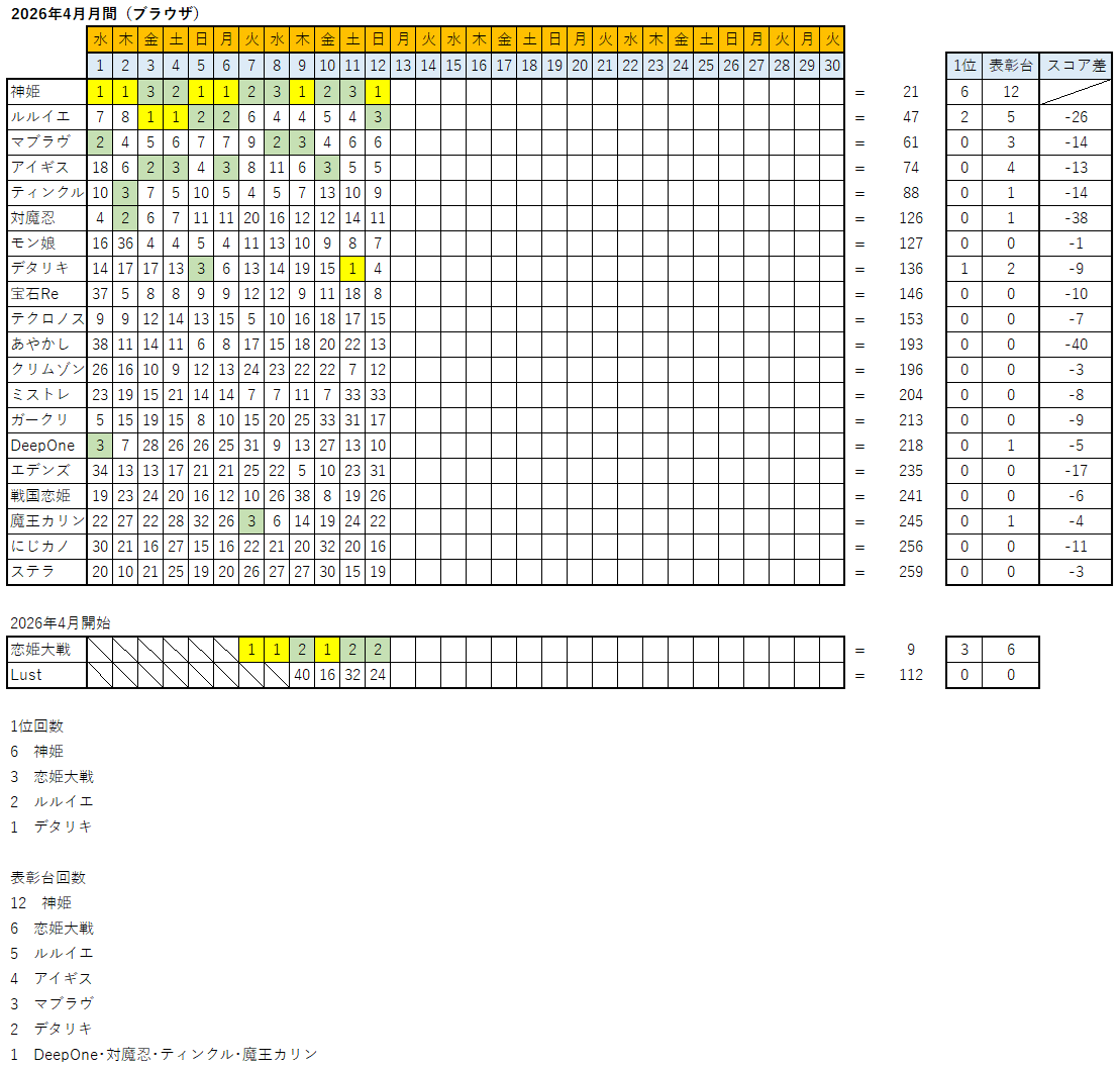 過去ランキング板(現在更新なし)